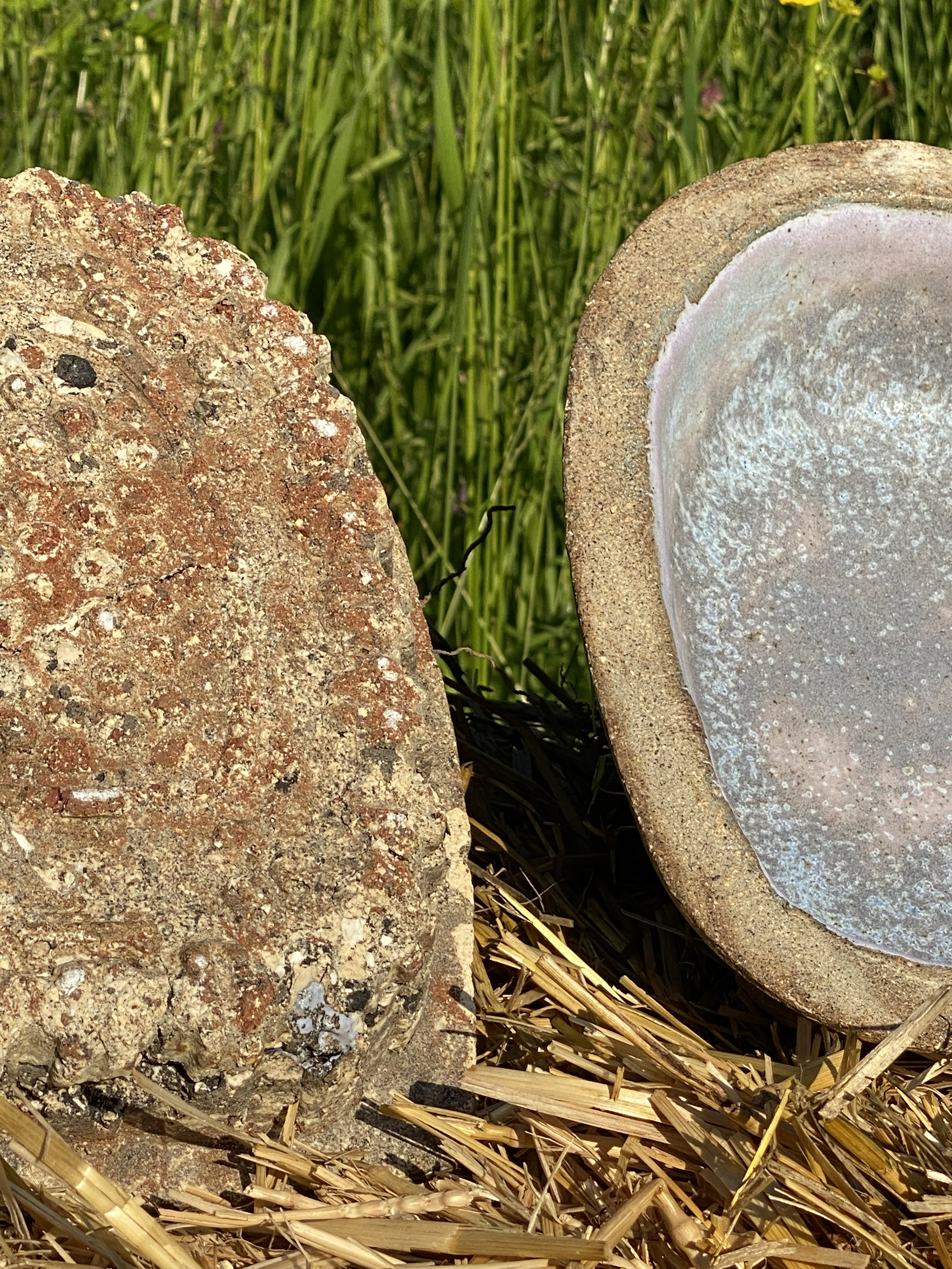 Yusuké Y Ohhause’s Yugen Stonewares series is based upon pre-existing forms, specifically plastic packaging for snacks and salads found in Swiss supermarkets. These forms, reinterpreted by Offhause, create fossilized renderings of contemporary objects, presenting an archeological object of the present. The experimental glazings and firings generate an abstracted sense of temporality, simultaneously archaic and futuristic, the work proposes a commentary on the longevity of objects and waste.